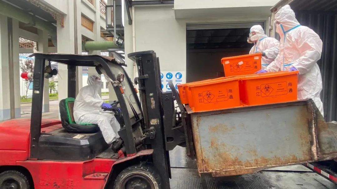 截至目前,南通东江已协调出动10辆收运车,对各医学机构、医学隔离点、核酸集中收集点、封管控区集中点积压医疗废物进行清运。每天接收涉疫医疗废物车30辆次,按照“日产日清”原则及时科学妥善处置,累计应急处置涉疫医疗废物近500吨。