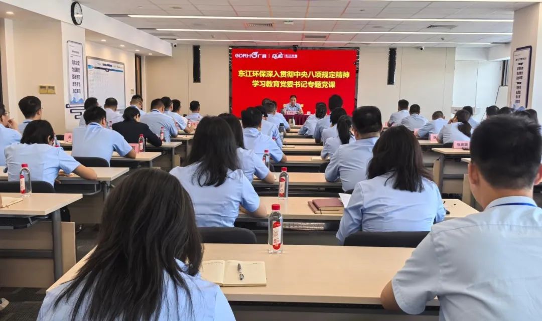 为扎实推进深入学习贯彻中央八项规定精神学习教育,持续深化作风建设,7月9日,东江环保党委举行深入贯彻中央八项规定精神学习教育专题党课,公司党委书记、董事长王碧安以《锲而不舍落实中央八项规定精神以优良作风激发东江环保高质量发展新动能》为题讲授专题党课。公司领导班子成员参加会议。