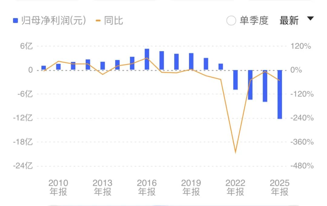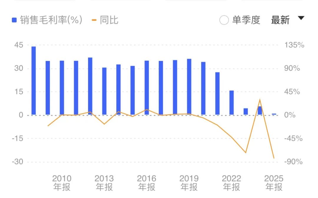 东江环保2022首次亏损以来,连续4年亏损,幅度越来越大,累计亏损了32亿元。2025年的毛利率接近0,仅0.96%……