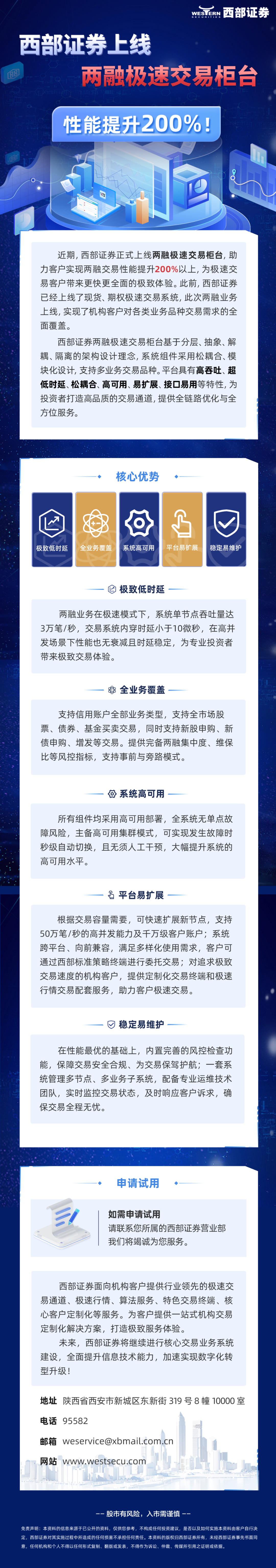 【数字化】西部证券上线两融极速交易柜台,性能提升200%