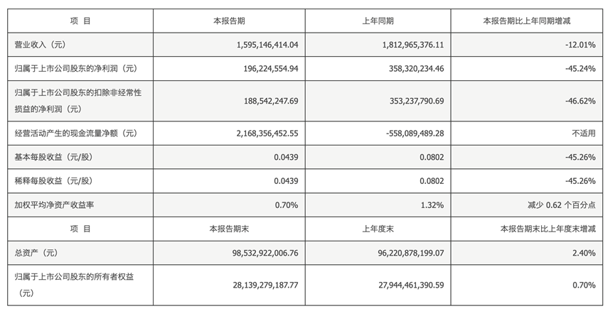 一季报显示,2024年一季度,西部证券实现营业收入15.95亿元,同比下降12.01%;归属于上市公司股东的净利润1.96亿元,同比下降45.24%。