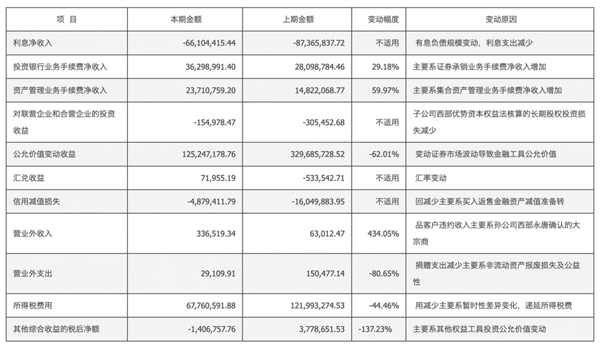 其中,投资银行业务手续费净收入3629.9万元,同比增加29.18%,主要系证券承销业务手续费净收入增加;资产管理业务手续费净收入为2371万元,同比增加59.97%,主要系集合资产管理业务手续费净收入增加。值得注意的是,报告期内,西部证券公允价值变动收益减少62.01%,对此,该公司解释称证券市场波动导致金融工具公允价值变动。