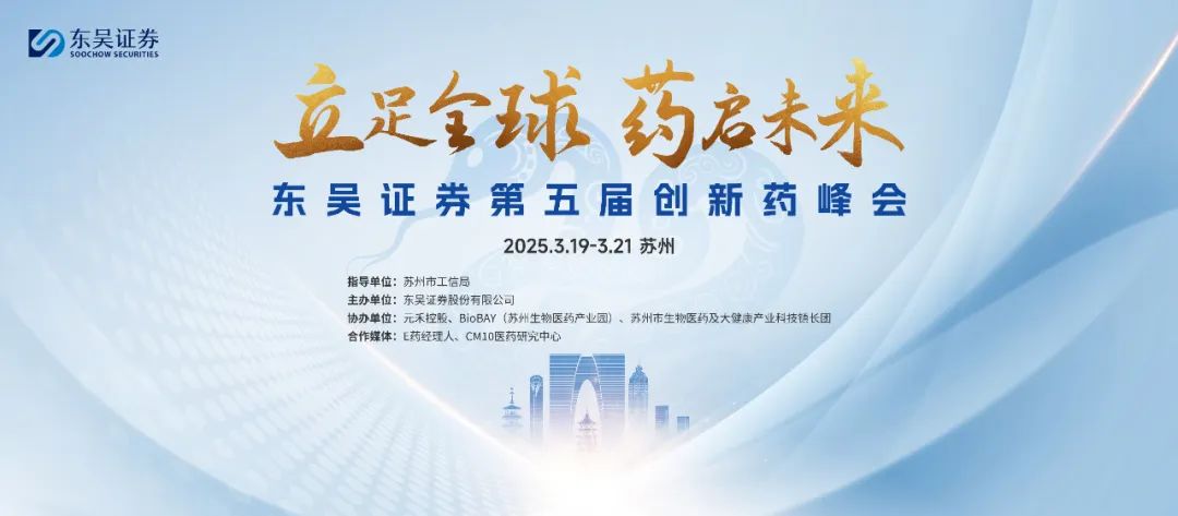 由苏州工信局指导,东吴证券主办,元禾控股和BIOBAY协办的东吴证券第五届创新药峰会暨中国JPM大会于3月19-21日在苏州圆满举行!2025年为国产创新药启动第十年,海内外均取得令人鼓舞的成绩。国内众多创新药获批上市,创新药海外授权数量和金额不断创新高,多家BIOTECH公司即将实现盈利,叠加国内商保等积极政策支持,2025年创新药板块有望持续走出结构化牛市。此背景下,东吴证券邀请院士、首席科学家、著名医药企业家、BIOTECH董事长、资深投资人、机构代表等齐聚苏州,共话创新药企业发展前景,挖掘产业机遇。