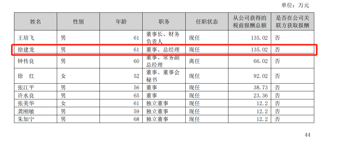 据乐居财经查阅,徐建龙2024年从公司获得的税前报酬总额135.02万元,2023年薪酬为163.77万元,同比降17.6%。