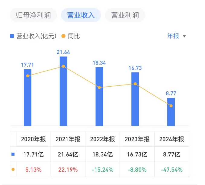 2024年,浙江美大营业收入8.77亿元,同比降47.54%;归属于上市公司股东的净利润1.1亿元,同比减少76.21%。