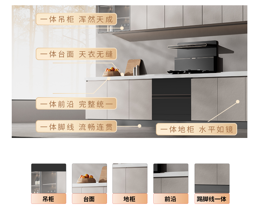 浙江美大聚焦用户痛点,通过模块化设计、精准尺寸控制与嵌入式接口标准化,使集成灶能够与各类橱柜实现无缝对接,完美融合。
