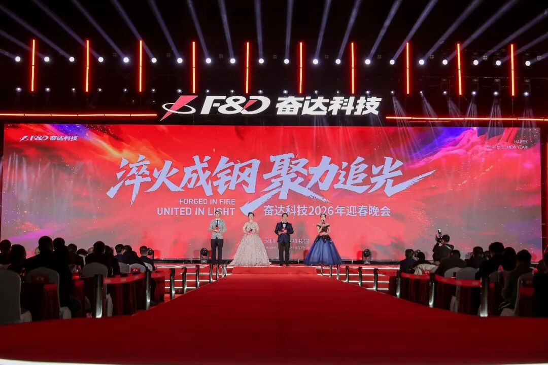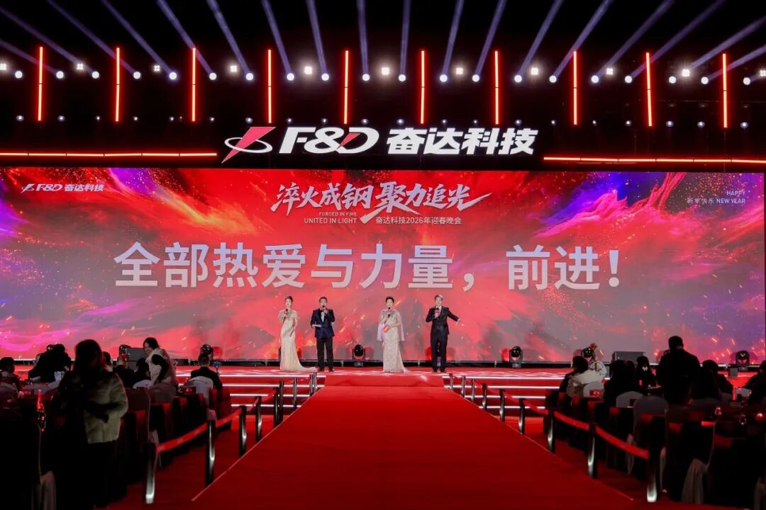 盛典在激昂与感动中接近尾声。四位主持人以深情的总结词,向全体奋达人致以新春祝福:愿奋达脊梁如钢,步履不息;愿每位家人心中有火,眼底有光。