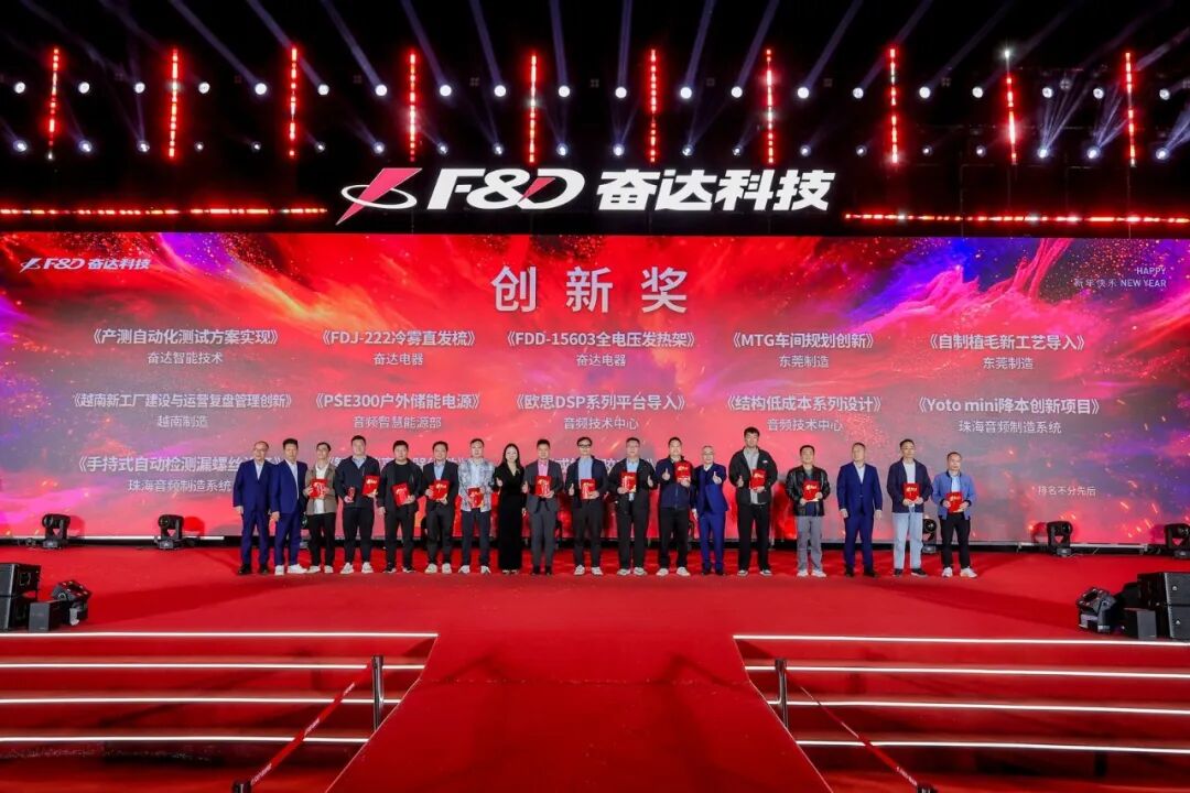 文化的灵魂需要创新的引擎驱动。随后,隆重颁发了奋达科技第23届创新奖,表彰了来自音频、电器、智能家居、智能技术、制造、医疗等各体系的13个杰出创新项目。这些项目从产测自动化、产品功能突破、工艺创新到运营复盘、平台开拓,充分展现了奋达人直面挑战、用智慧创造价值的卓越能力。