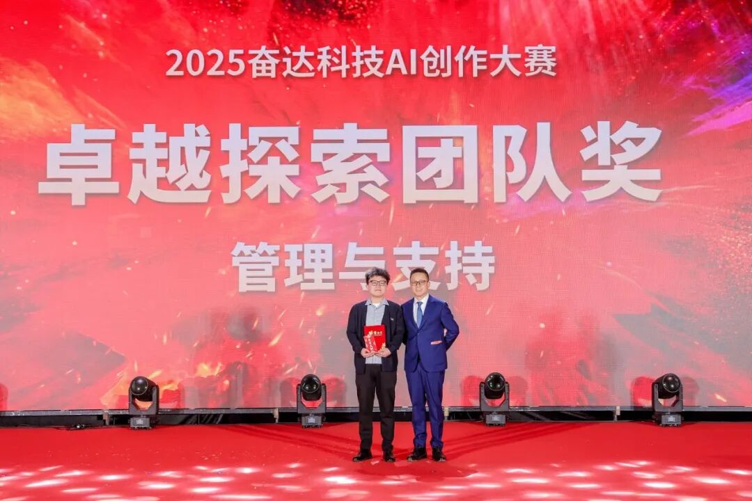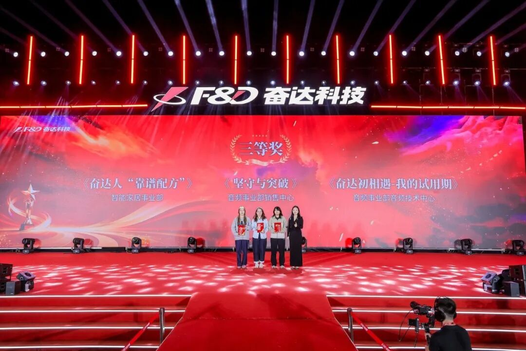 荣耀时刻,属于每一位奋斗者。晚会隆重颁发了“薪火照新程·群星闪耀时”系列活动的多项大奖。奋达科技2025短视频大赛的一、二、三等奖作品,从日常坚守、艺术凝练到思想警醒,多维度展现了文化的力量。AI创作大赛则聚焦未来,授予在集体探索中表现突出的“管理与支持”团队“卓越探索团队奖”,激励全员拥抱智能工具,赋能创新。