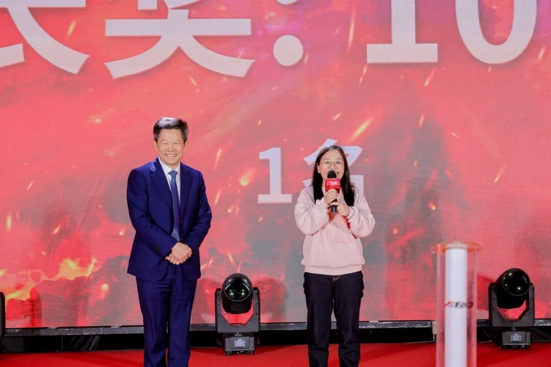 贯穿全场的多轮抽奖环节持续点燃热情。最终,备受期待的董事长特奖(10000元)、总裁奖(8800元,2名)及一、二、三、四等奖逐一揭晓,丰厚的奖金与礼品让幸运与欢笑洒满全场。