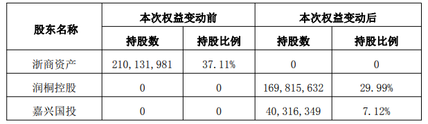 本次权益变动完成后,公司控股股东将由浙商资产变更为润桐控股,实际控制人将由浙江省人民政府国有资产监督管理委员会变更为桐乡市财政局。