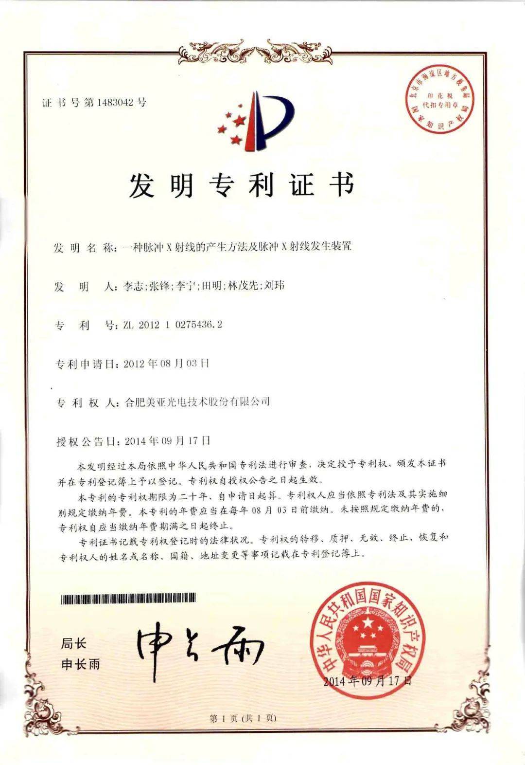 从诞生起就开始以“打破国际垄断,铸就优秀民族品牌”为企业使命的美亚光电人,果然不负众望,一路走来,不断突破创新,坚持自主研发,拥有了一大批具有自主知识产权的核心专利,连续7次跻身为安徽省发明专利百强榜行列。其核心专利包括:一种可以做到低剂量拍摄与高清影像并存的混合脉冲射源技术、完全自主研发的智能牙科软件诊断系统等。