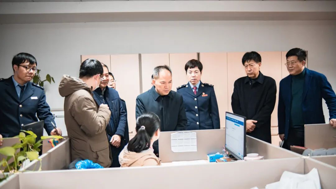在顾地科技财务管理中心,湖北省税务局副局长覃木荣与会计胡洁亲切交谈,详细询问升级后的企业所得税汇算清缴网报系统使用情况,收集基层操作信息,并现场办公,优化使用体验。