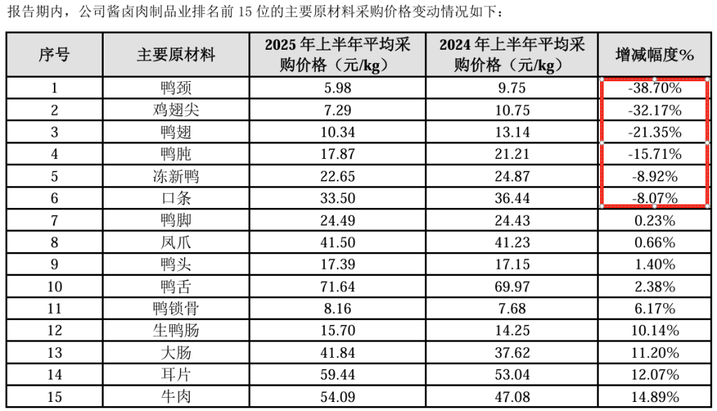 利润逆势增长主要系“主要原材料鸭翅、鸭脖、冻新鸭等相关鸭副产品原料市场价格仍处于低位,以及人工成本、市场投入的线上线下促销费用等销售费用较去年同期大幅减少”,使得公司净利润实现增长。
