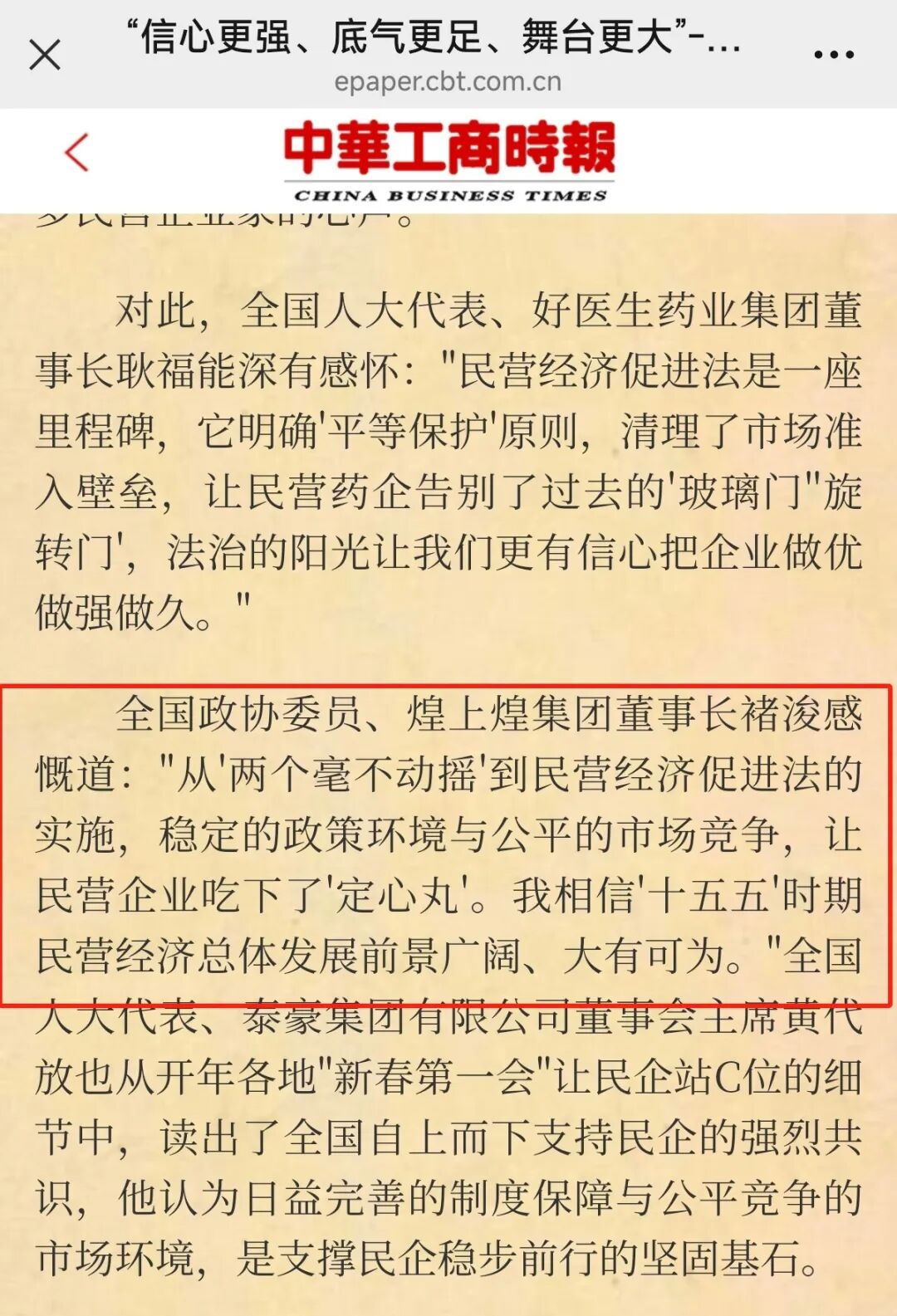 谈及参会感受,褚浚委员感慨道:“从‘两个毫不动摇’到民营经济促进法的实施,稳定的政策环境与公平的市场竞争,让民营企业吃下了‘定心丸’。我相信‘十五五’时期民营经济总体发展前景广阔、大有可为。”