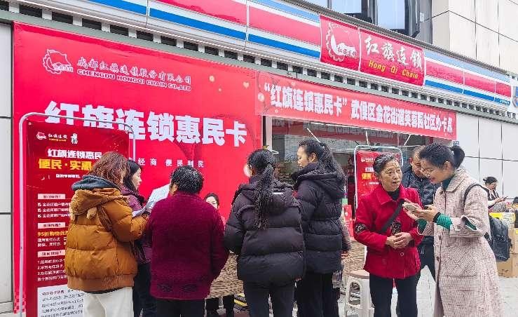 在四川省商务厅的支持和指导下,四川省商业投资集团旗下红旗连锁充分发挥上市公司引领作用,深入贯彻落实党的二十届三中全会提出的"在发展中保障和改善民生是中国式现代化的重大任务"要求,积极践行2025年全国两会政府工作报告中“坚持以人民为中心,经济政策的着力点更多转向惠民生、促消费”的战略部署,以及中共中央办公厅、国务院办公厅近日印发的《提振消费专项行动方案》。2025年3月20日,红旗连锁联合成都高新区合作街道办首次创新推出"红旗连锁惠民卡",以国企担当书写惠民利民新篇章,为四川商投集团"服务民生保障、促进消费升级"的战略蓝图增添生动注脚。同时,武侯区金花桥街道、金牛区营门口街道、天府新区兴隆街道、锦江区春熙路街道、青羊区金沙街道、成华区双桥子街道也开始同步办理红旗连锁惠民卡。