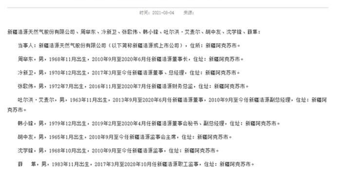 8月4日,新疆证监局披露关于对新疆浩源及8名相关责任人的行政处罚决定书。同日,新疆证监局还披露了对周举东、冷新卫、张歌伟、吐尔洪·艾麦尔、韩小锋的市场禁入决定书。