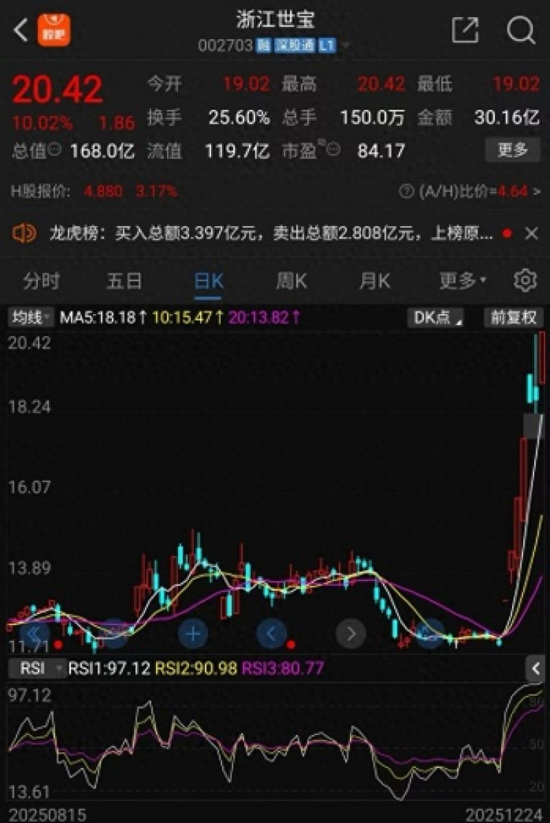 2025年末的A股市场,智能驾驶板块成为了最耀眼的明星赛道之一。12月24日,英唐智控、星网宇达、合众思壮等一众上市公司股价纷纷涨停,其中,浙江世宝更是迎来股价与业绩的双重爆发。近期公司股价开启强势上涨模式,16日至19日连续斩获四连板,24日再度封死涨停,实现“7天5个涨停”的表现。