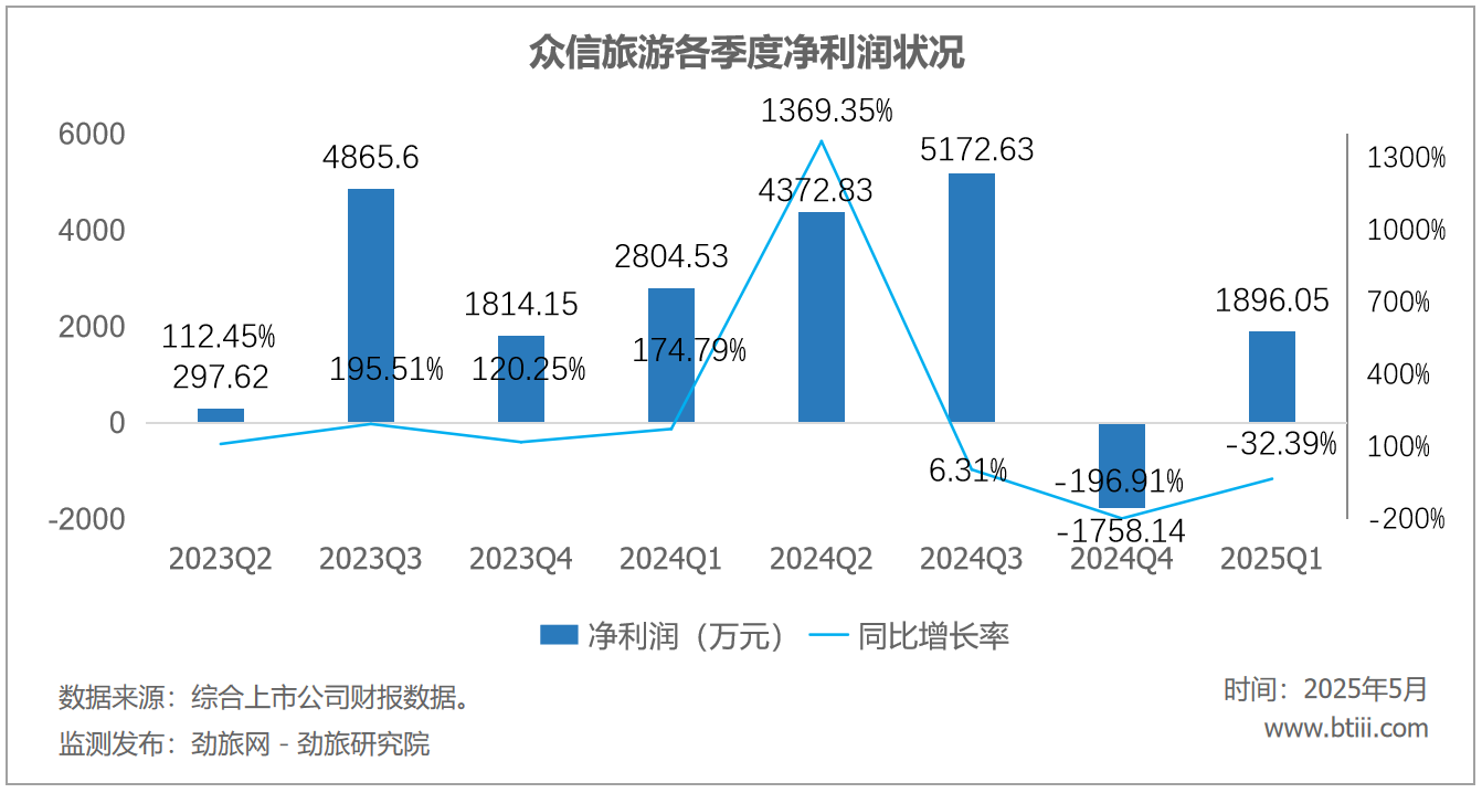 进入2025年,以众信旅游为代表的广大旅行社企业,尤其是出境游为主要业务的企业,在国际形势依旧纷繁复杂,签证政策松紧不一,有的免签,有的收紧,中国经济下行压力持续加大,居民消费分级愈发明显,出境游尤其是长线出境游热情与疫情前,已不可同日而语,恢复了两年的旅游企业间的竞争重新激烈,包括众信旅游在内的旅行社企业净利润将开始承压。