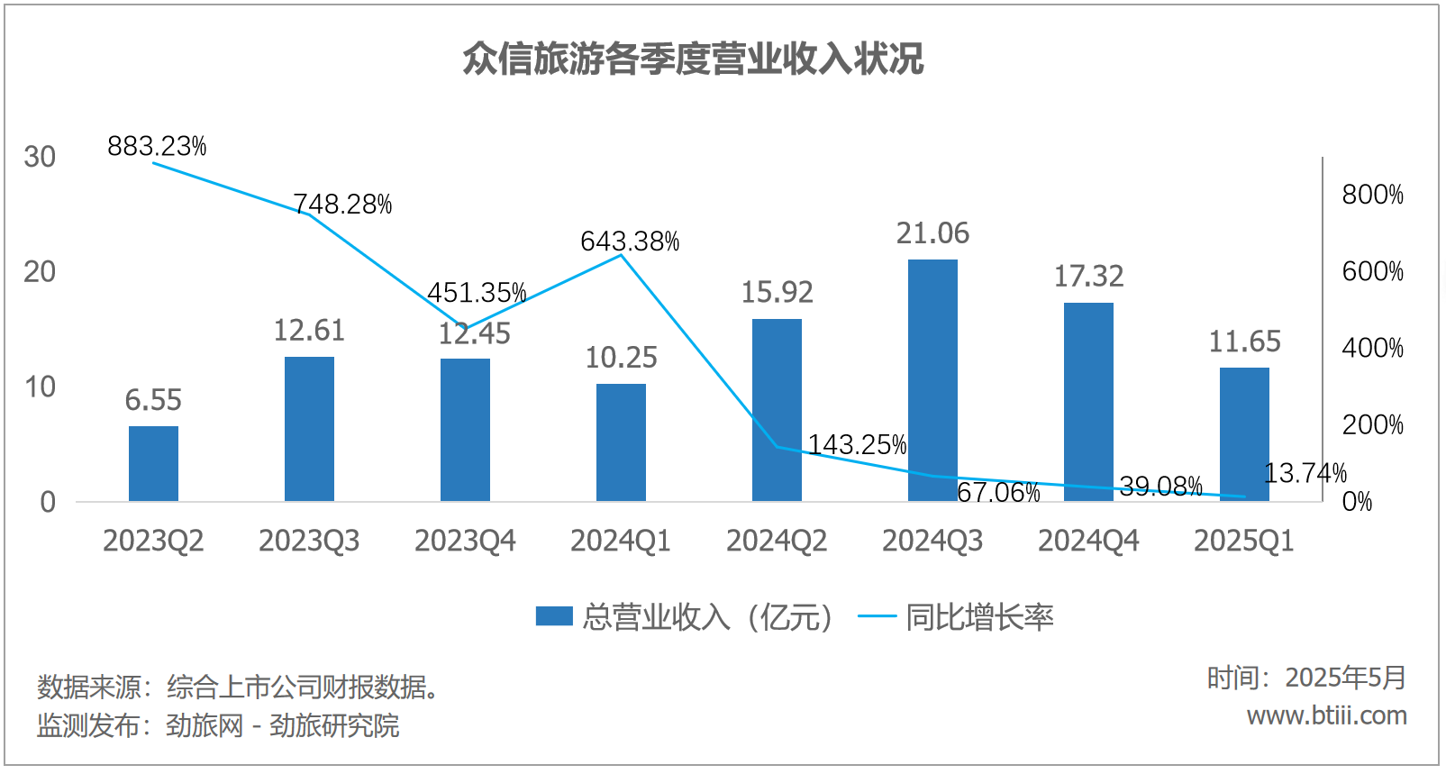 根据报告,一季度众信旅游营业收入11.65亿元,上年度为10.25亿元,同比增长13.74%。