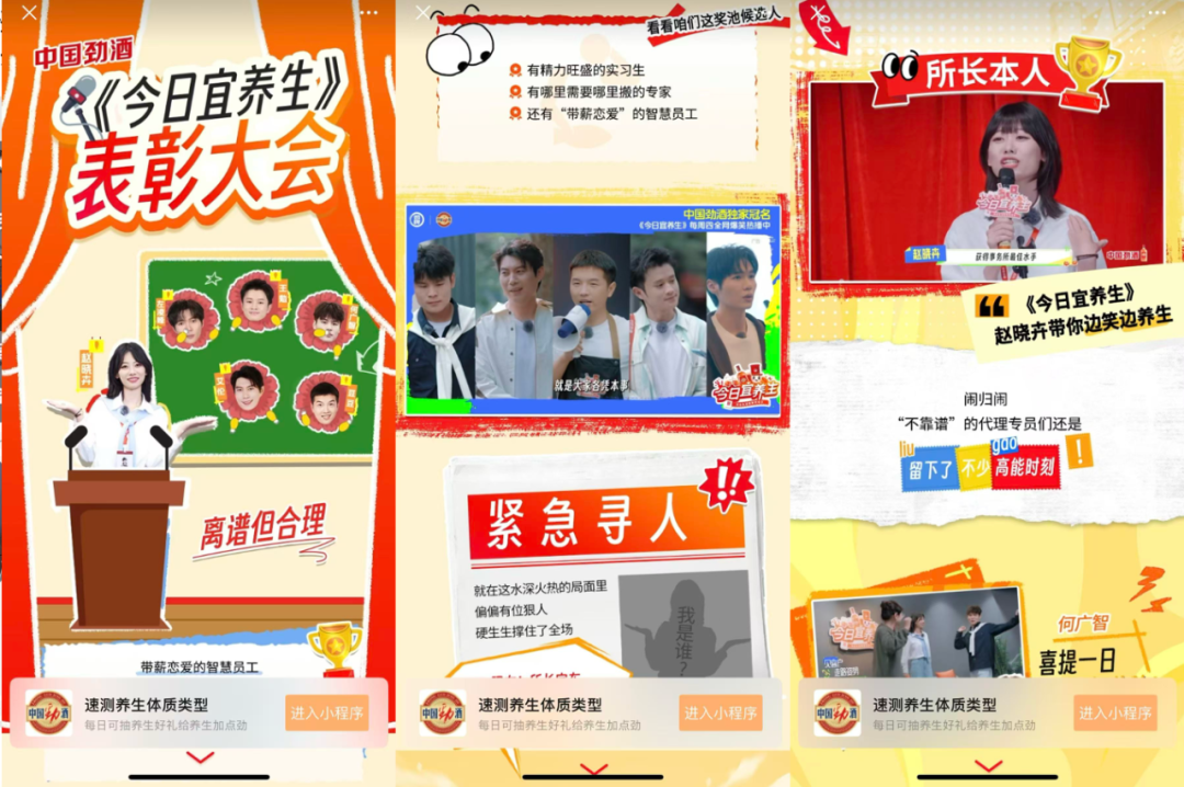 项目的基石是中国劲酒独家冠名的养生生活喜剧微综艺《今日宜养生》。该节目以轻松、有趣的喜剧形式承载养生知识,本身即构成了一个高质量的品牌中心化内容资产。华意纵驰团队并未止步于内容本身的影响力,而是以此为核心引擎,通过社会化话题营销将其转化为可参与、可传播、可裂变的用户社交货币。