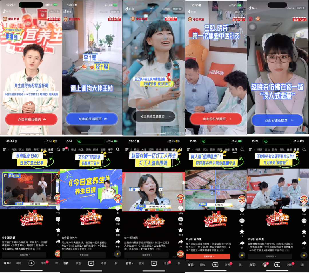 团队围绕节目,在抖音等社交平台策划并推出了#劲酒带你开把养生局、#劲酒做你的养生搭子等一系列社会化话题。这些话题将视角从“品牌讲述”巧妙转向“用户表达”,把养生这一概念从传统的、严肃的语境中解放出来,赋予其趣味性、场景化和社交属性。例如,“开把养生局”借用了游戏开局的流行语态,暗示养生可以像朋友聚会一样轻松开启;“养生搭子”则精准捕捉了当下年轻人偏好结伴、分享的生活方式,将中国劲酒定位为陪伴用户健康生活的友好伙伴。