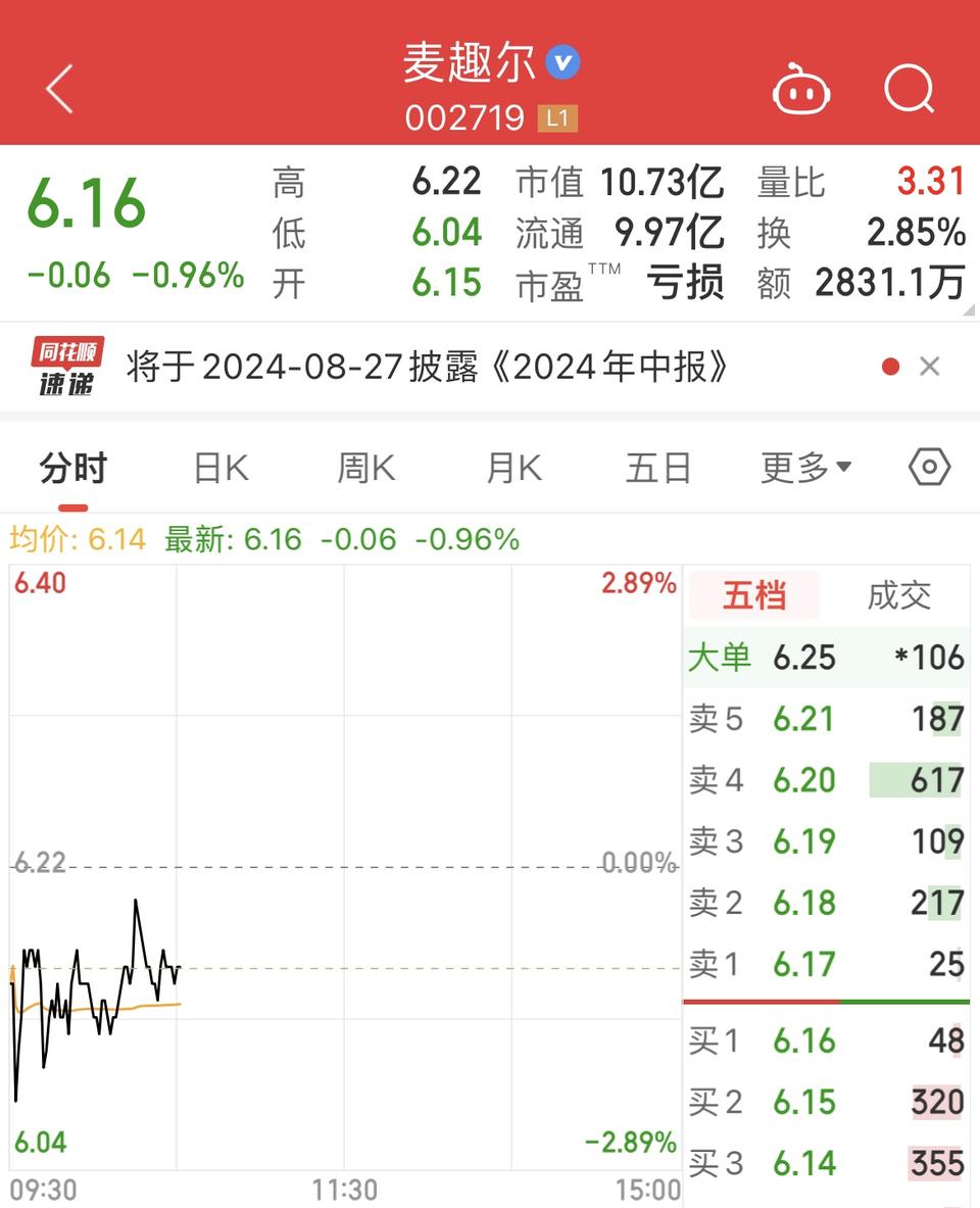 年内,麦趣尔股价跌幅超46%,截至发稿报6.16元/股。