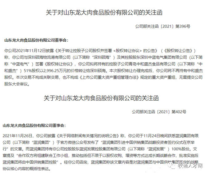 控股股东或将“易主”?龙大肉食再收关注函