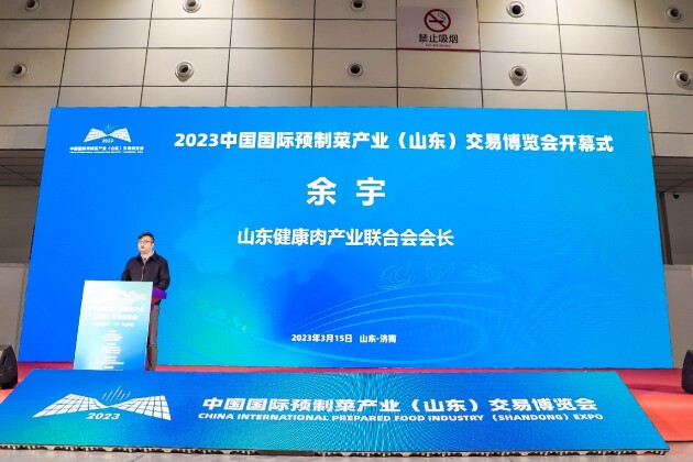在预制菜交易博览会开幕式现场,山东健康肉产业联合会会长、龙大美食董事长余宇发表致辞。他表示,近两年来,龙大美食预制菜业务发展增速喜人,成为山东预制菜行业高质量发展的一个重要缩影。未来,行业企业勠力同心,山东预制菜产业将蓬勃壮大,助推农业产业化发展,助力乡村振兴。
