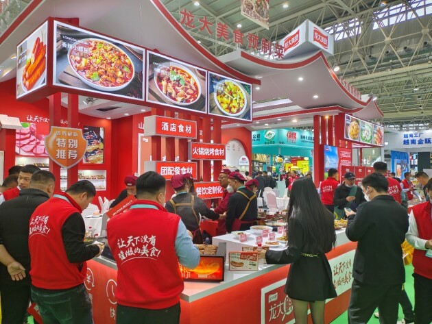 龙大美食此次携上百种预制菜产品亮相展会。在展区内,公司针对酒店食材、火锅烧烤食材、团配餐食材、餐饮定制化等不同场景,分区展示了匹配不同客户需求的预制菜产品。同时,水煮肉片、金汤酸菜鱼、红烧肉、咕咾肉等特色化、区域化的预制菜产品也将丰富C端用户的场景选择需求。