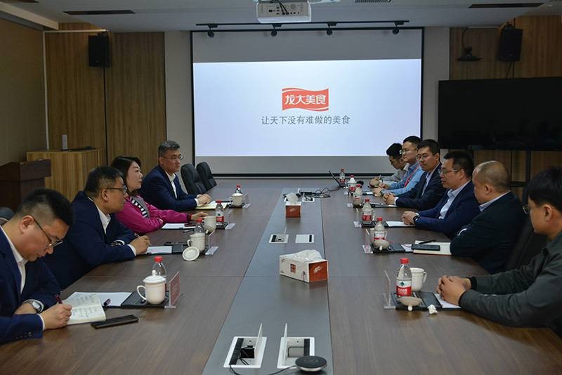 巴中市恩阳区委副书记、区长何奎带队来到龙大美食进行调研与座谈,深入了解目前龙大美食企业运营情况及未来在预制菜业务上的发展规划,并与龙大美食就共同推进巴中生猪屠宰及肉制品深加工项目进行了交流。