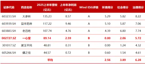 这一系列合规风险也反映在公司的外部评价中。第三方评级方面,以Wind ESG为例,一心堂获评B级,在各维度的ESG评分均低于同为“万店连锁”的益丰、大参林以及老百姓三家头部零售。