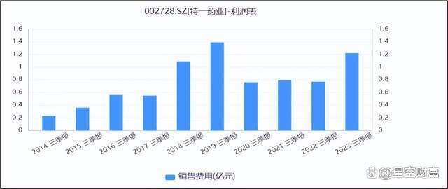 关于业务增长,公司在半年报中解释为“止咳宝片及其他中成药制剂产品销量上涨的带动”。中成药拉动不假(半年报显示,中成药同比几乎翻倍,其他产品变动不大),但公司解释还是流于表面,根源还是钱砸得够多。毕竟,特一的产品都是些常用药,前三季度又无新产品推出,需求又未产生巨大波动。