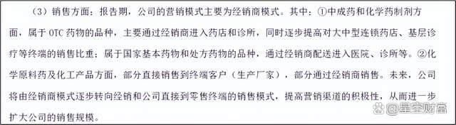 目前,特一的营销模式以经销商为主,只有少量化学原料药及化工产品,是直接销售到终端客户(制剂药生产厂家),其他均是通过经销商进入药店和诊所。