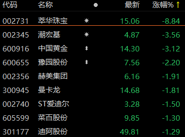 珠宝与奢侈品板块表现趋弱 萃华珠宝下跌超8%