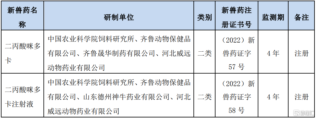 利民股份(002734)(002734.SZ)公布,近日,利民控股集团股份有限公司子公司河北威远药业有限公司(简称“威远药业”)取得由农业农村部核发的二类《新兽药注册证书》。