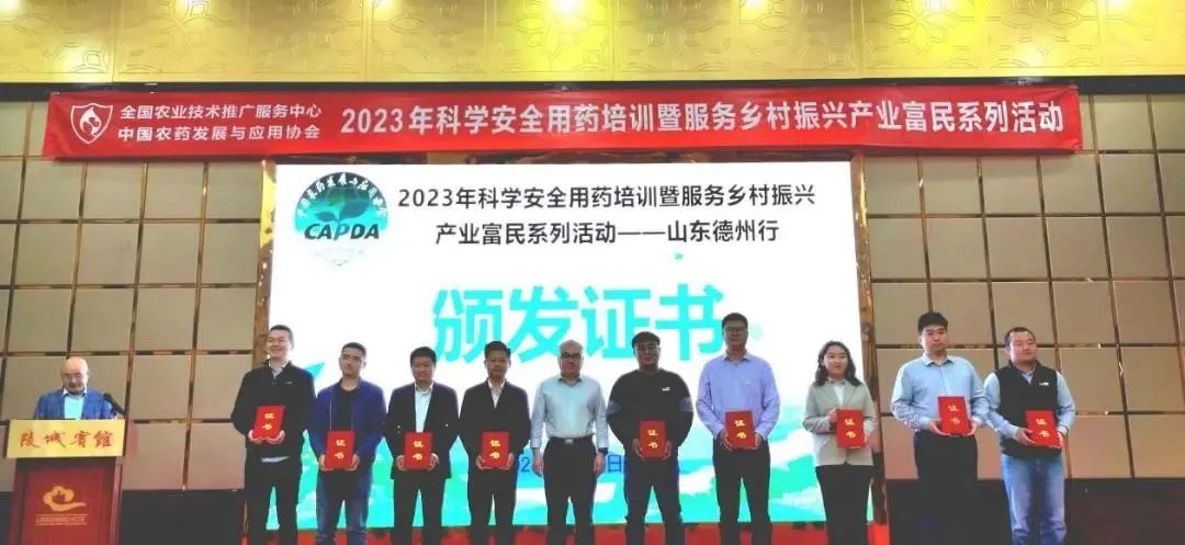 上午8点30分,中国农药发展与应用协会秘书长华荣军、德州市陵城区副区长张洪东、德州市委常委副市长王福祥等领导分别致辞。随后举行捐赠仪式,中国农药发展与应用协会向捐赠企业代表颁发证书,利民控股植保营销中心山东大区经理许海阳代表公司领取荣誉证书。