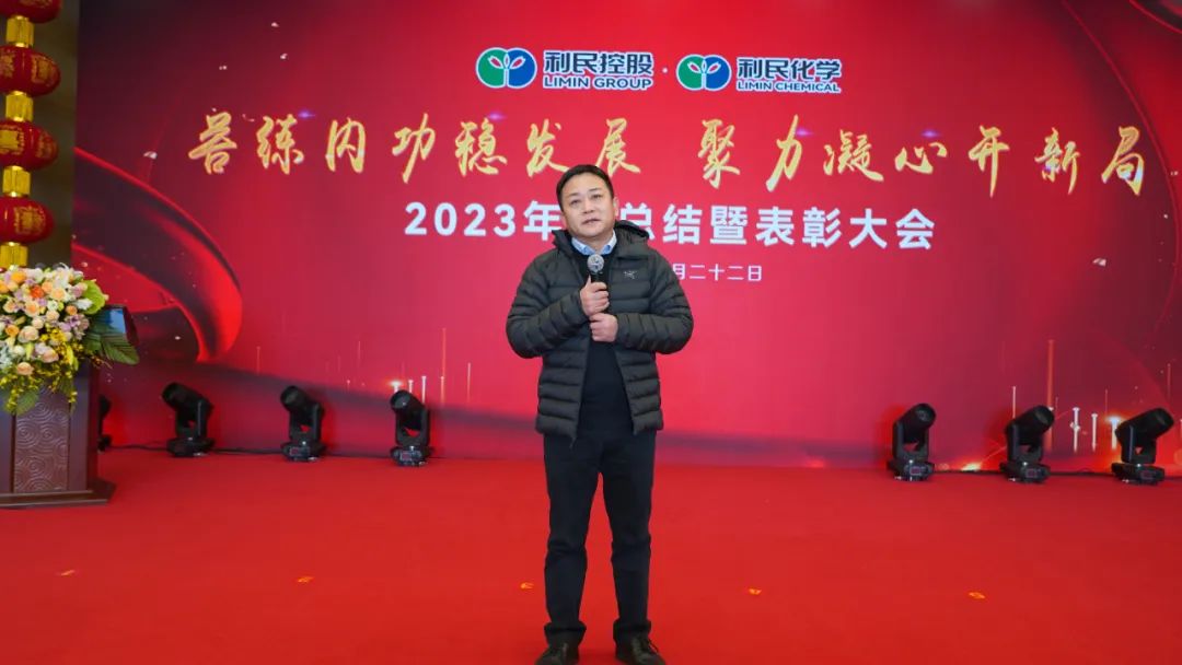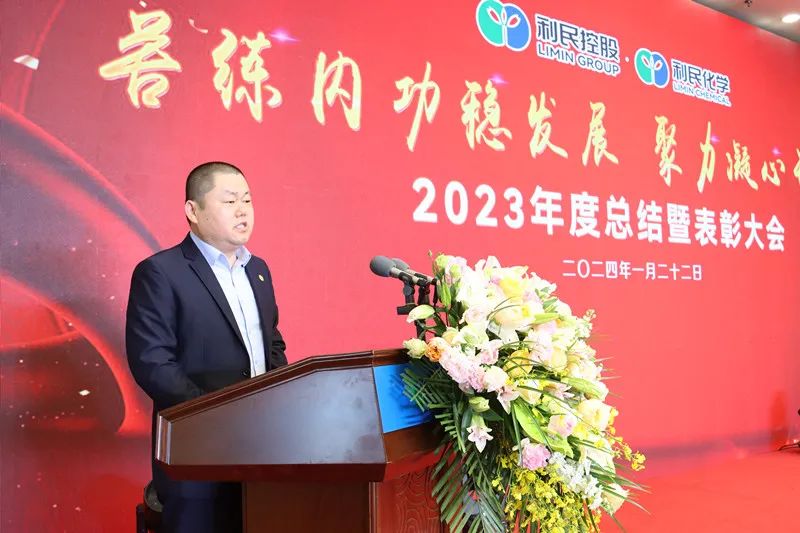 会上,利民化学副总经理(主持全面工作)杨军强作了题为《苦练内功稳发展聚力凝心开新局》的年度工作报告,围绕利民化学在2023年度安全环保管理、人力资源管理、信息化建设、企业文化建设等,全面回顾了过去一年所取得的成绩、存在的不足,并对2024年各项工作进行了全面规划和部署;向为公司健康可持续发展不懈奋斗的全体同仁表示感谢与祝福;杨总号召全体员工,2024年,在集团领导下,依旧要保持永不懈怠的精神状态和一往无前的奋斗姿态,坚持问题导向、结果导向、市场导向,继续将“不遗余力补短板,想方设法破瓶颈,持续提高生存和发展能力”作为工作总体思路主线,持续强化产销协同,优化提升产品工艺,抓细抓实成本控制,统筹做好一体谋划,确保各项工作稳步推进,奋力开创企业高质量发展新局面。