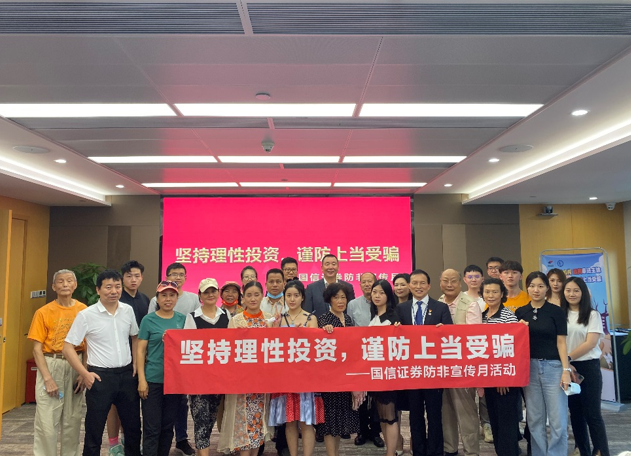 2022年5月26日,在深圳证监局的指导下,国信证券联合深圳市证券业协会、深证投资者服务中心和投教同行共同举办“坚持理性投资,谨防上当受骗”防非宣传投教活动,活动在国信证券深圳红岭分公司举行,现场邀请了三十余位投资者共同参与。