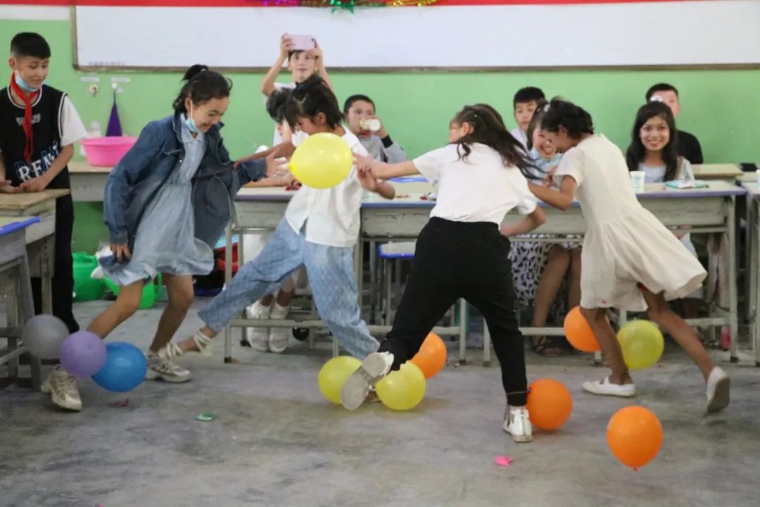 儿童节活动共设置了10个节目,跳舞、合唱、“抢凳子”“踩气球”“你画我猜”等等。