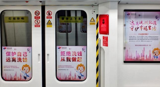 国信证券打造的“反洗钱”专列将在深圳地铁2号线运行至7月底,快带上您的家人、朋友一起来打卡吧!