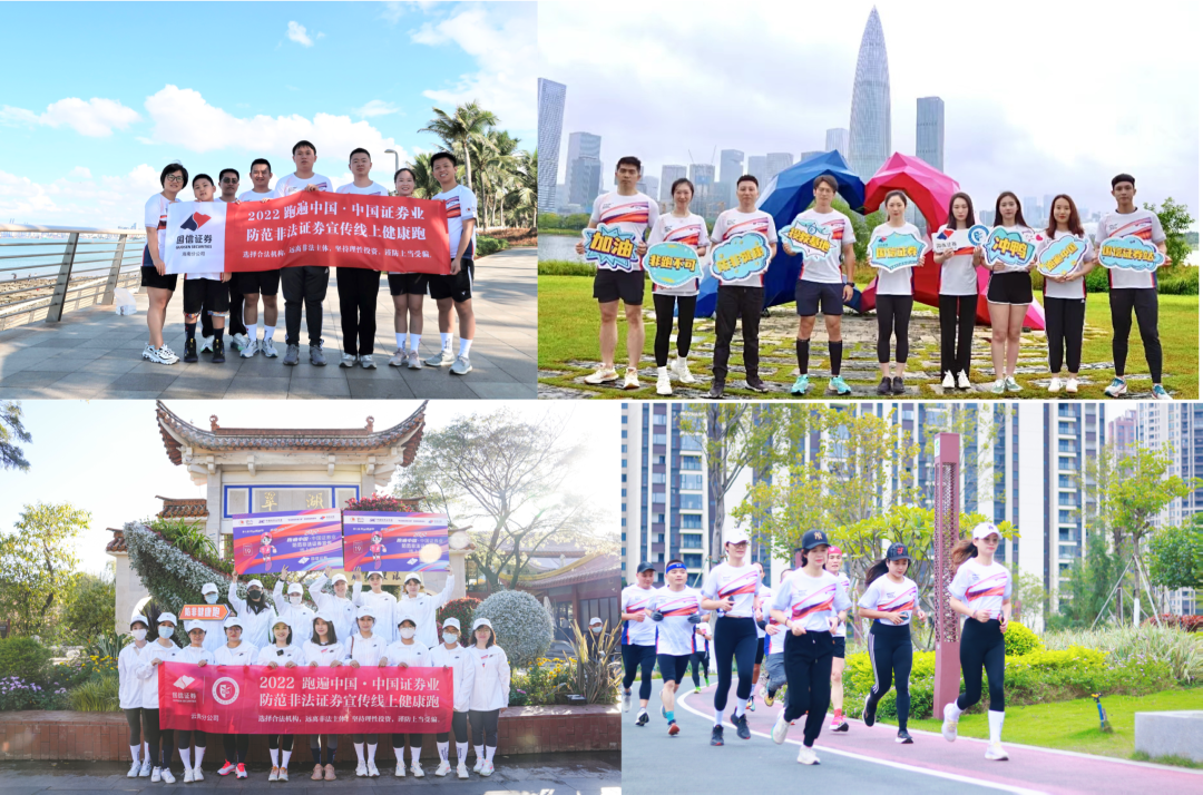 为贯彻落实中办、国办《关于依法从严打击证券违法活动的意见》及中国证监会相关要求,充分发挥行业引领作用,在中国证监会指导下,中国证券业协会联合中国田径协会、地方证券业协会、证券经营机构、“中证协投资者之家”互联网投教基地,于2022年5月启动第七届中国证券业防范非法证券宣传线上健康跑公益活动。本年度活动宣传主题为“选择合法机构,远离非法主体,坚持理性投资,谨防上当受骗”,由包括国信证券在内的22家证券公司承办接力式健康跑活动,向全行业、全国投资者、跑者提供免费活动名额,携手普及防非知识,提升防非识非、防骗反诈能力,共筑资本市场和证券业健康发展环境。