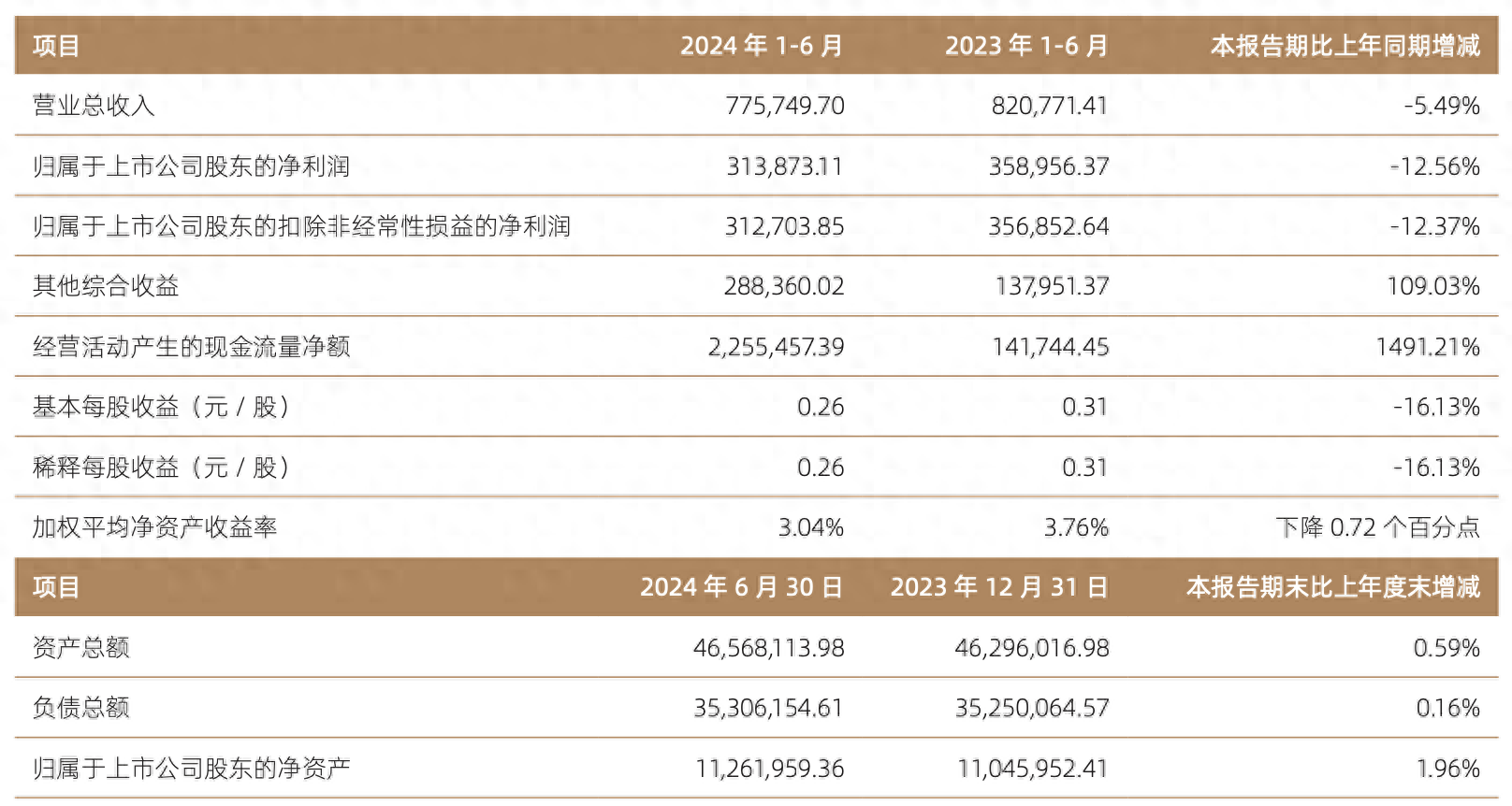8月23日晚,国信证券发布公告,2024年上半年公司实现营业总收入77.57亿元,同比下降5.49%;归属于上市公司股东的净利润为31.39亿元,同比下降12.56%;基本每股收益0.26元。