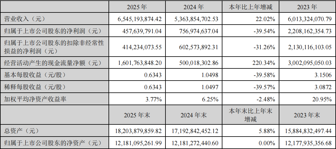 4月9日,中矿资源发布2025年年度报告。报告期内,公司实现营业收入65.45亿元,同比增长22.02%;归属于上市公司股东的净利润为4.58亿元,同比下降39.54%。归属于上市公司股东的扣除非经常性损益的净利润为4.14亿元,同比下降31.26%。
