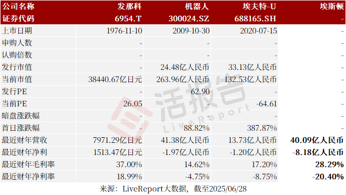 同行业IPO可比公司有:发那科、机器人、埃夫特-U等