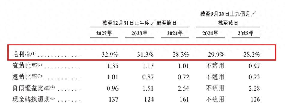报告期内,公司的毛利率持续走低。2022年至2025年前9个月,毛利率分别为32.9%、31.3%、28.3%及28.2%。