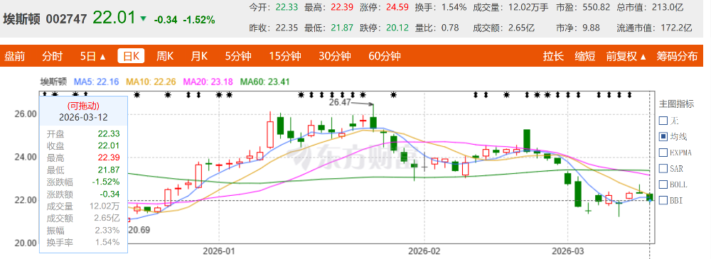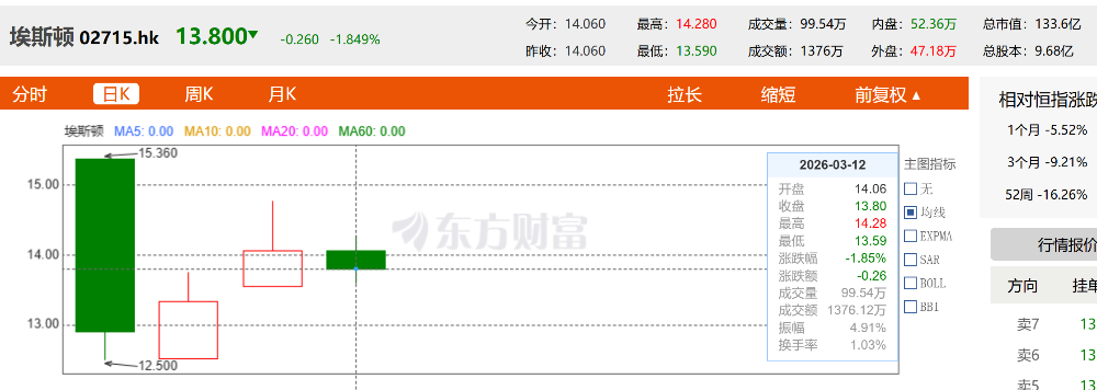 相关媒体报道显示,此次埃斯顿全球发售价为每股15.36港元,本次发行另设置15%超额配股权。截至3月12日收盘,埃斯顿港股报收13.80港元,下跌1.85%。同日,埃斯顿A股股价报收22.01元,下跌1.52%。