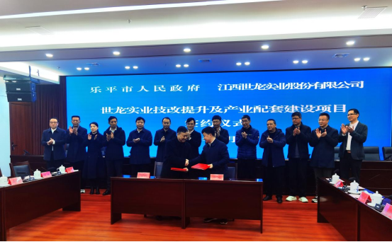 世龙实业董事长、总经理汪国清对市委市政府为促进本次项目成功落地的鼎力支持表示衷心感谢。汪总谈到,世龙实业是以生产发氯碱及其下游产品为主的综合性化工企业、江西省高新技术企业,是乐平工业园产业链的龙头企业,在江西精细化工产业占有重要地位。2022年度获评“中国精细化工百强”、“中国石化行业500强”。凭借这次签约的东风,公司将以自身产品特点、行业属性、技术优势、创新能力,与园区企业携手合作、共谋发展!项目一定会取得圆满成功并收获丰硕的成果,未来发展前景可期!