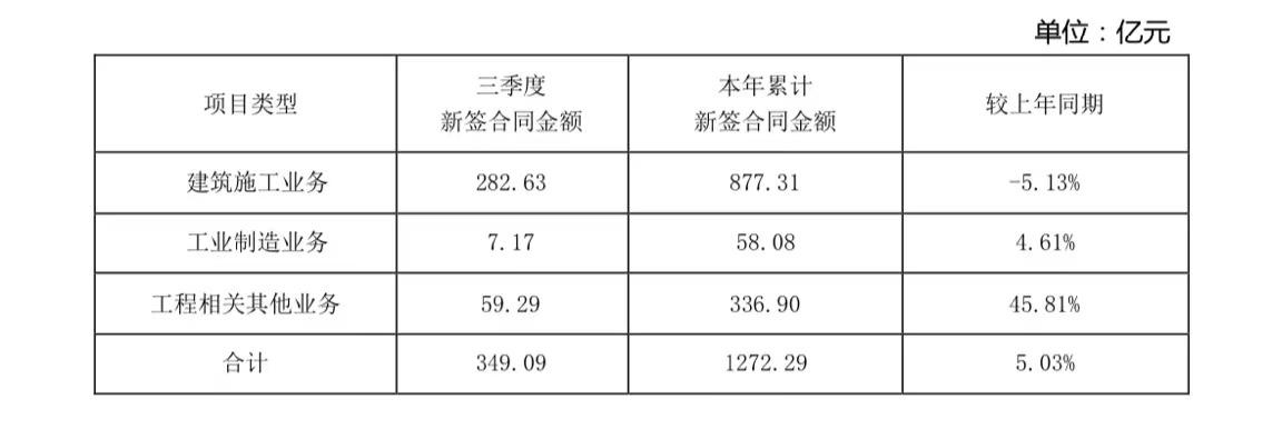 2023年1月至9月,公司及下属子公司累计新签合同金额为人民币1272.29亿元,较上年同期增长5.03%。