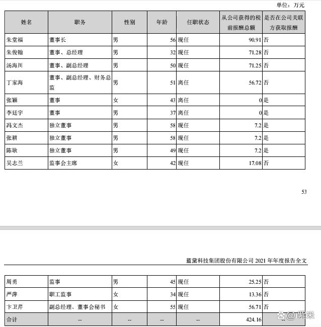 年报显示,报告期内公司实际支付董事、监事、高级管理人员报酬共424.16万元,董事长朱堂福2021年从公司获得报酬为90.91万元,董事、总经理朱俊翰2021年从公司获得报酬为71.28万元,副总经理、董事会秘书卞卫芹2021年从公司获得报酬56.71万元。